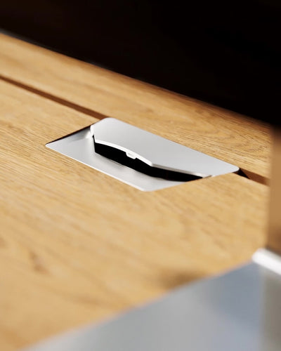 Das minimalistische Design fügt sich nahtlos in DeskPURE, DeskPRO und ArcPURE ein und schafft einen eleganten Kontrast zum Massivholz.