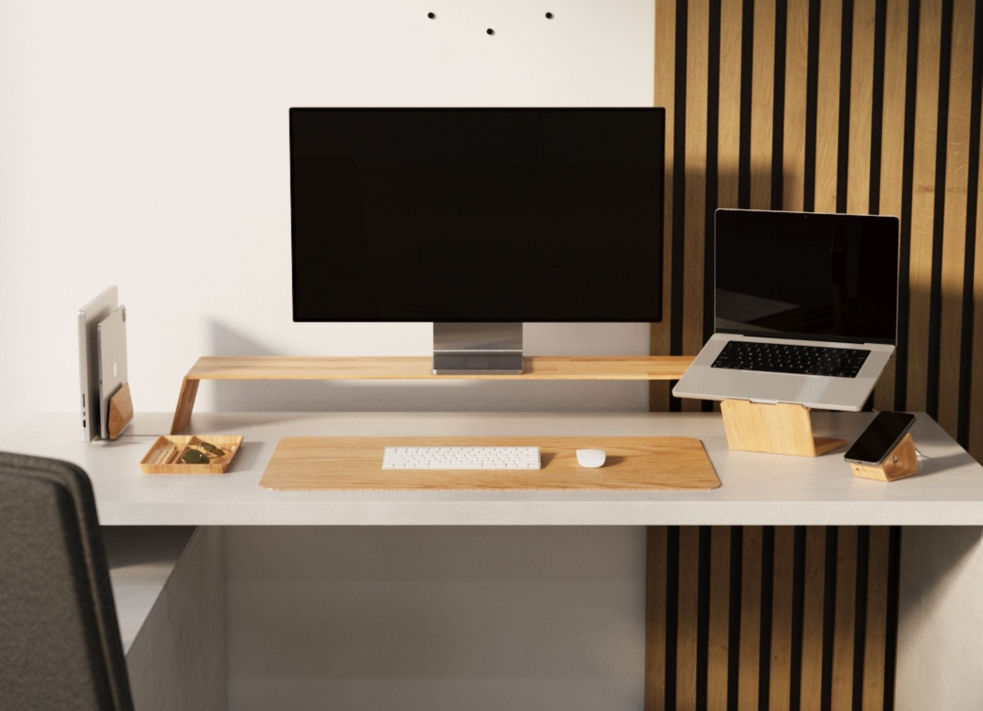 Unsere Monitorerhöhung mit modularen Anbauteilen - dein Statement.